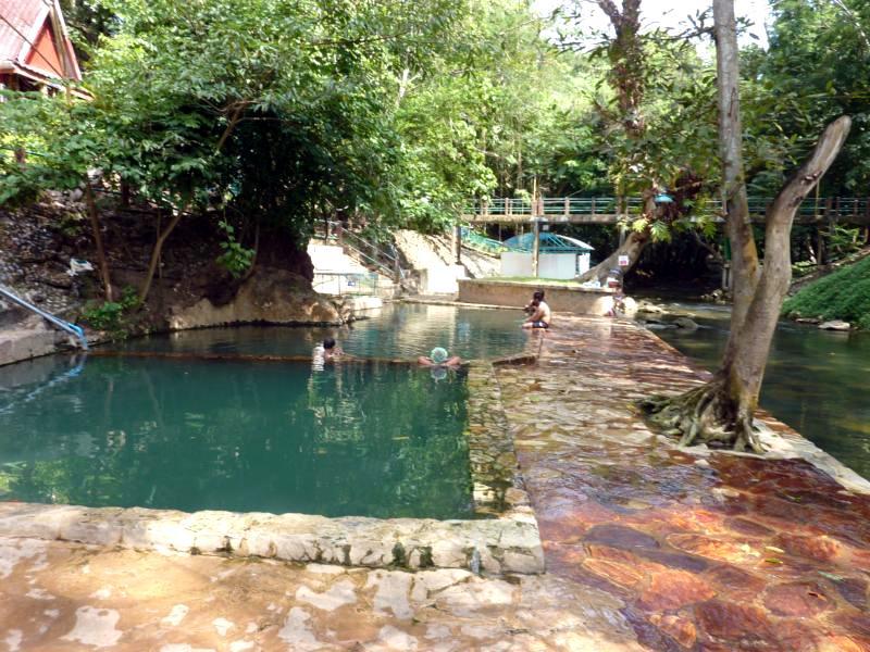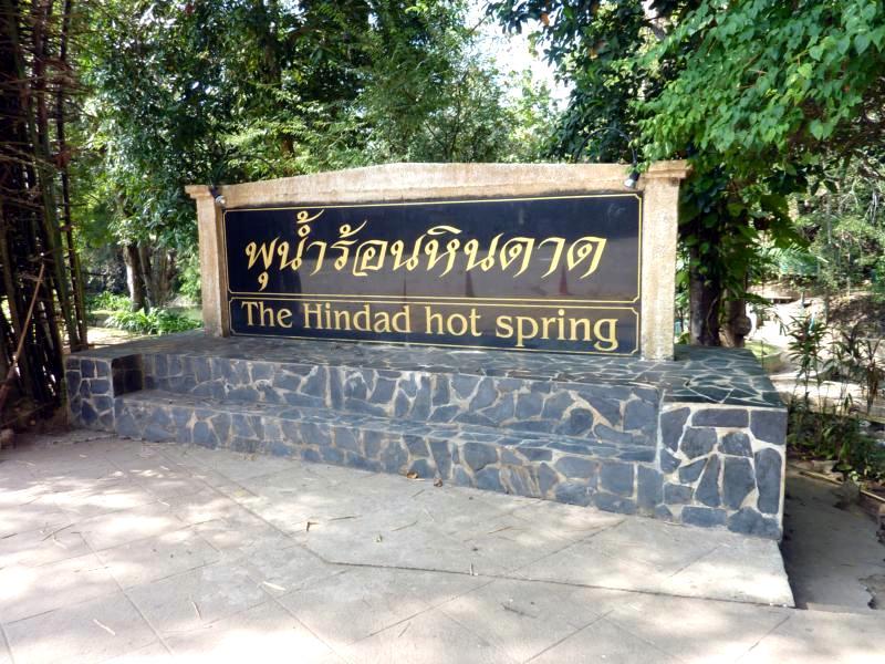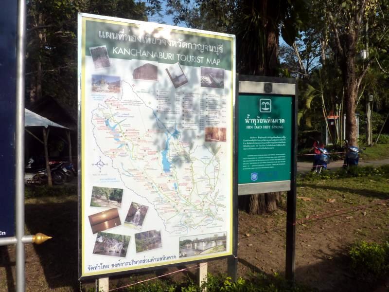 บ่อน้ำพุร้อนหินดาด หรือที่ทราบกันดีในอีกชื่อหนึ่งคือบ่อน้ำพุร้อนกุยมั่ง เป็นบ่อน้ำพุร้อนที่ถูกค้นพบโดยทหารญี่ปุ่น ในสมัยญี่ปุ่นคุมเชลยศึกมาสร้างทางรถไฟสายมรณะ ผ่านไปในเส้นทางนี้โดยบังเอิญในปีพุทธศักราช 2483 น้ำพุร้อนหินดาด เป็นบ่อน้ำร้อนธรรมชาติริมลำธาร อุณหภูมิประมาณ 45-55 องศาเซลเซียส มีบ่อซีเมนต์ที่มีน้ำพุร้อนบรรจุอยู่ 2 บ่อ ซึ่งตั้งอยู่ข้างลำธารที่มีน้ำไหลเย็นให้คุณได้ปรับสภาพอุณหภูมิในร่างกายได้อย่างง่ายดาย เชื่อกันว่าน้ำแร่จากบ่อน้ำร้อนแห่งนี้ มีสรรพคุณในการรักษาโรคภัยไข้เจ็บหลายอย่าง เช่น โรคเหน็บชา ไขข้ออักเสบ และอื่นๆ