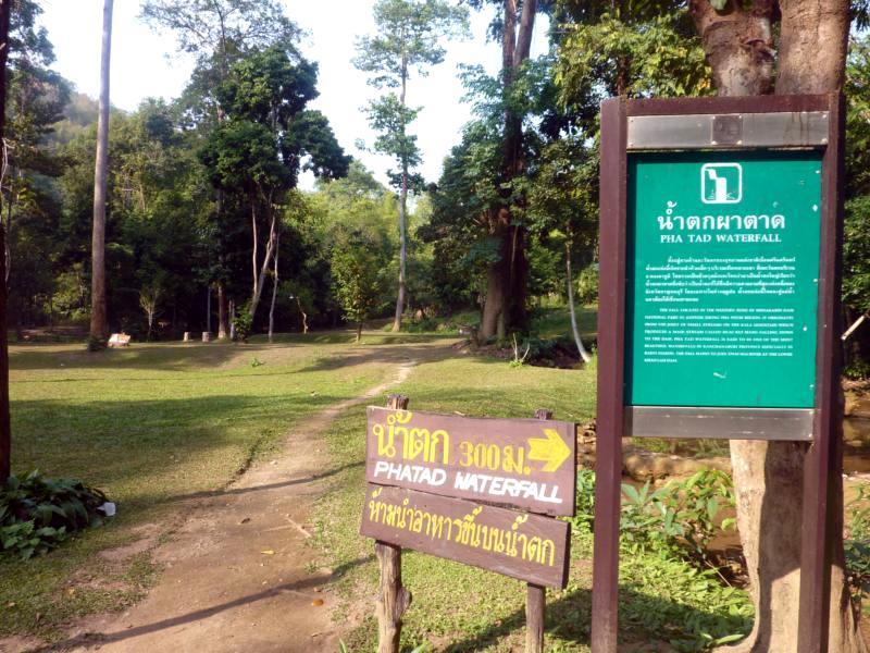 เมื่อขับรถออกมาจากนาคาคีรี รีสอร์ท แอนด์ สปา จนมาถึงสี่แยกทางเข้ารีสอร์ท เพียงแค่คุณเหลียวซ้ายแลขวาเพื่อให้แน่ใจว่าไม่มีรถวิ่งมาบนทางหลวงหมายเลข 323 เส้นทางหลัก จากนั้นคุณก็ขับรถข้ามไปฝั่งตรงข้ามที่มีป้ายทางเข้าน้ำตกผาตาด หลังจากนั้นก็ขับรถตามเส้นทางเข้ามาจนกระทั่งถึงทางแยก แล้วเลี้ยวขวาขับไปตามเส้นทางนั้นพร้อมทั้งชมวิวทิวทัศน์ โดยรอบของสองข้างทาง จนกระทั่งขับมาถึงด่านเก็บค่าเข้าชมน้ำตก จ่ายค่าเข้าน้ำตกเพื่อเป็นค่าบำรุงักษาความสวยงามและเป็นธรรมชาติ หลังจากนั้นก็ขับรถต่อมาที่ลานจอดรถที่จัดไว้ให้ ก่อนที่จะจอดรถคุณต้องมองขึ้นบนฟ้าเพื่อให้แน่ใจว่าไม่มีกิ่งไม้หล่นลงมาใส่ที่รถคุณ หรือคุณอาจจะมาจอดรถที่บริเวณใกล้กับออฟฟิศของเจ้าหน้าที่ดังเช่นที่หลายคนในพื้นที่นั้นทำกัน